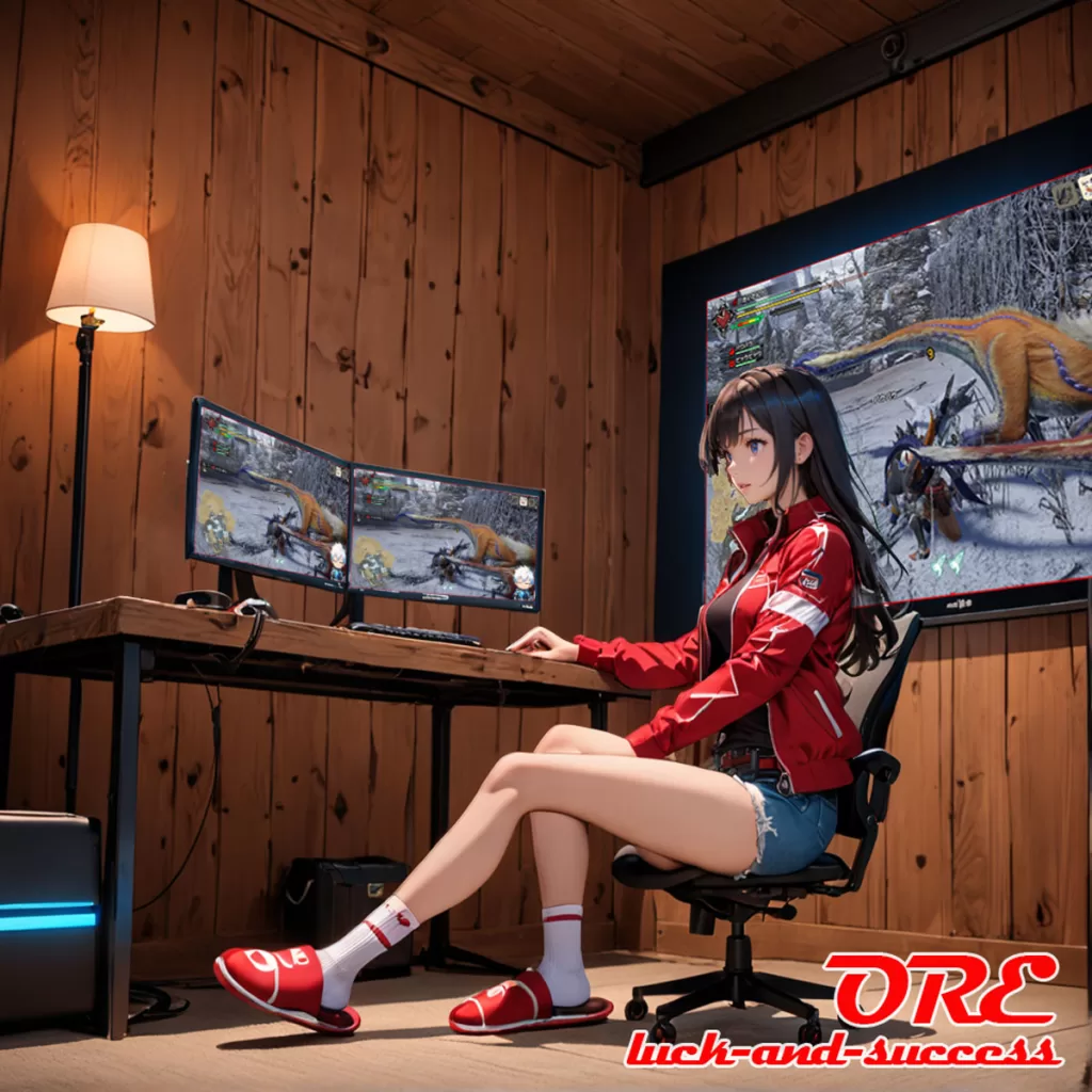 画面の中には青い鎧を着たアバターが流行りの狩猟ゲームをプレイしていた!